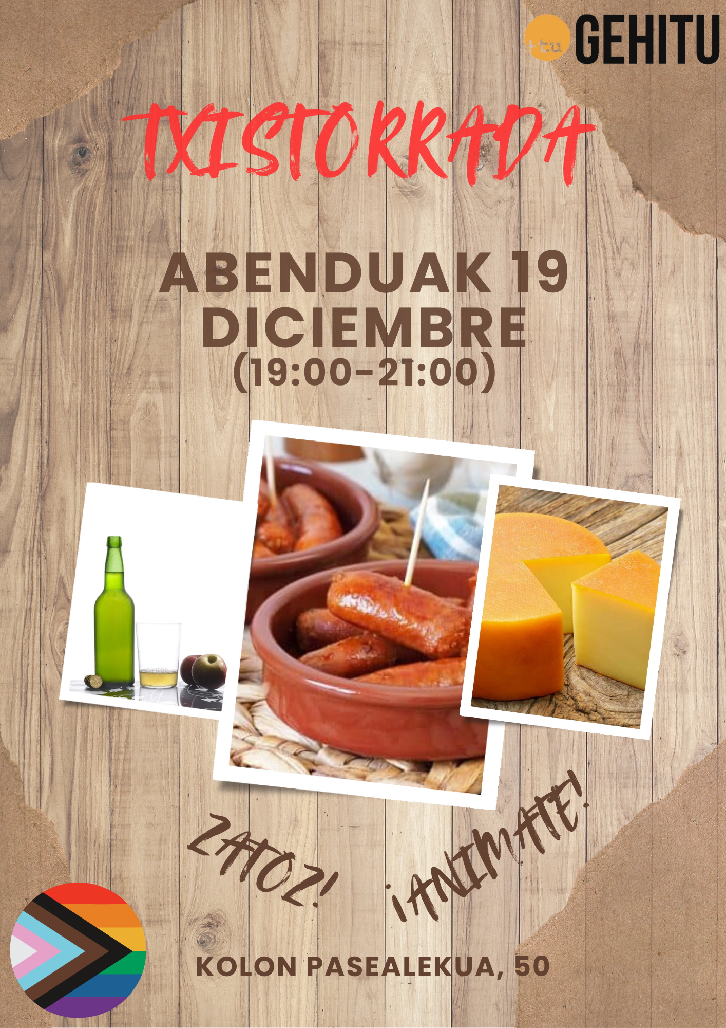 Datorren Ostiralean, abenduak 19an, Gehitun 19:00etatik 21:00etara ospatuko dugun Txistorradara* gonbidatzen zaituztegu.