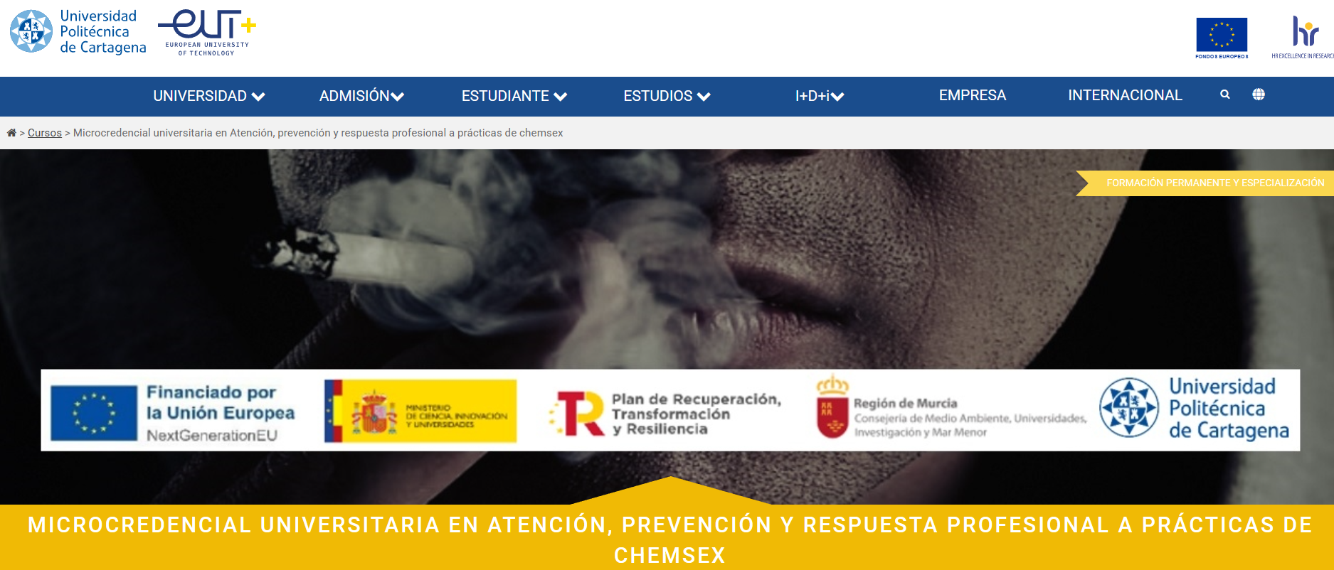 Cartagenako Unibertsitate Politeknikoko Unibertsitateko mikrokredentzialari buruzko informazioa partekatzen dizuegu: “Arreta, prebentzioa eta erantzun profesionala chemsex-eko praktikei”da haren izenburua, eta osasunaren, esku-hartze sozialaren eta hezkuntzaren arloko profesionalei eta antzeko diziplinetako ikasleei zuzenduta dago.