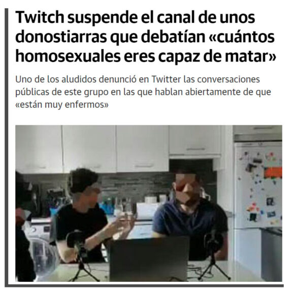 Twitch plataformak bertan behera utzi du “zenbat homosexual hiltzeko gai zaren” eztabaidatzen ari ziren donostiar batzuen kanala