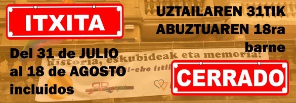 Como cada año, debido a las vacaciones de verano, la sede de Gehitu permanecerá cerrada desde mañana 31 de julio hasta el 19 de agosto. Nos vemos a la vuelta el 19 de agosto con…