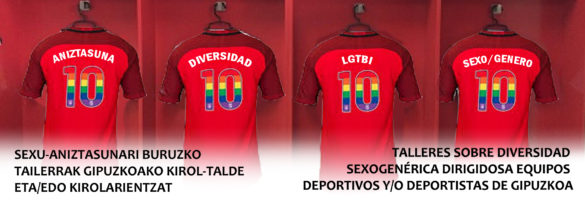 TALLERES SOBRE DIVERSIDAD SEXOGENÉRICA DIRIGIDOS A EQUIPOS DEPORTIVOS Y/O DEPORTISTAS DE GIPUZKOA Las asociaciones guipuzcoanas Mugen Gainetik y Gehitu nos dirigimos a vosotrxs con el objeto de ofrecer a los equipos deportivos y/o deportistas de vuestra federacion…