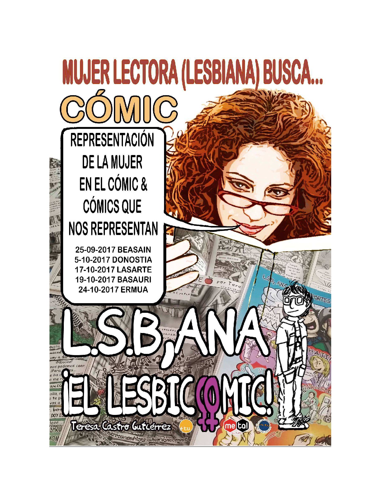 La presidenta de GEHITU, Teresa Castro, vuelve con una nueva revisión del documento Lesbiana busca, en el que se muestran diferentes novelas en las que las protagonistas son mujeres. Como ella misma afirma “la presencia de mujeres empoderadas en nuestras novelas graficas ha sido una falta que poco a poco se empieza a resarcir, con unas tendencias editoriales que cada vez dan mayor voz a las autoras”.