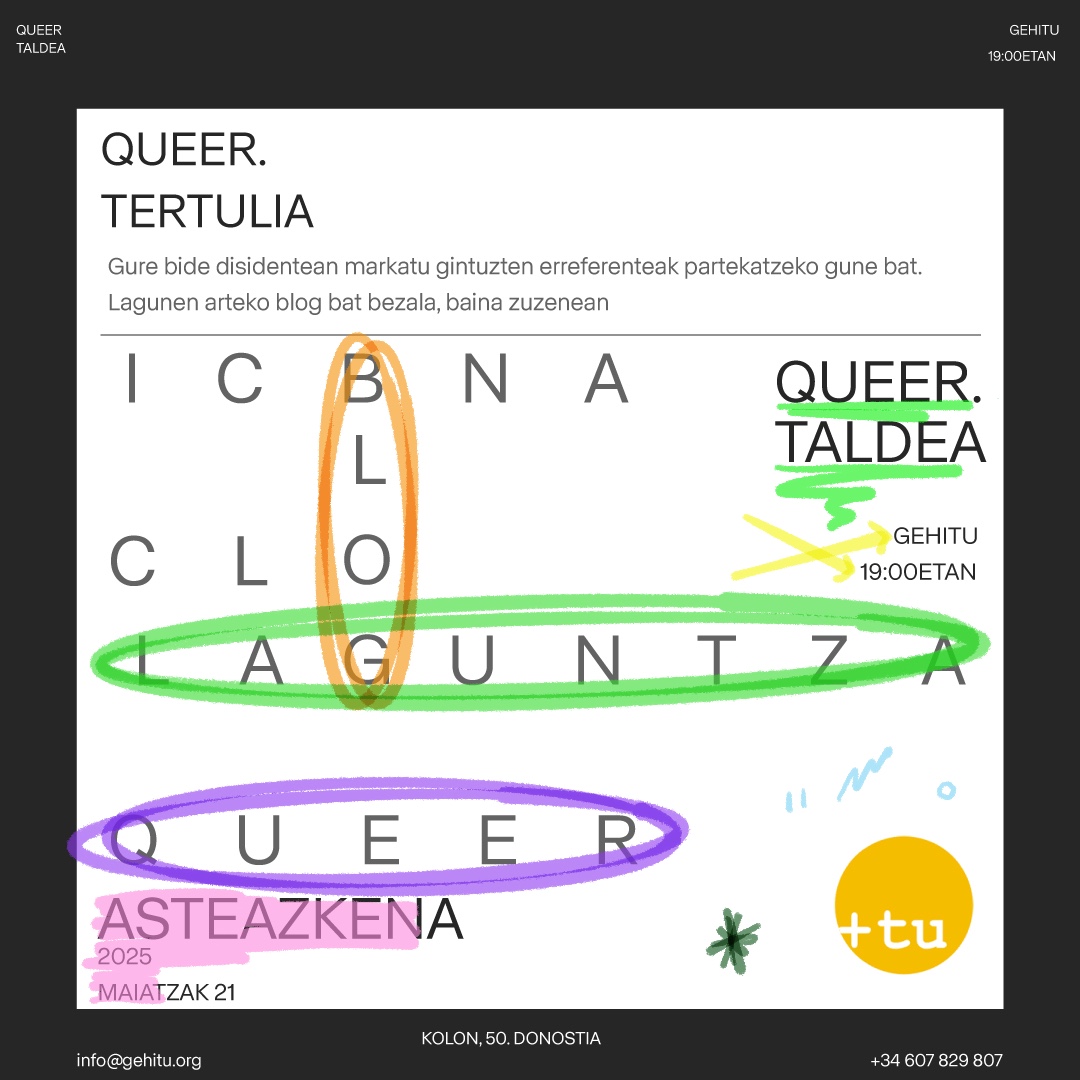 Maiatzaren 21ean (asteazkena), Queer Taldearen bosgarren topaketa egingo dugu, 19:00etan.