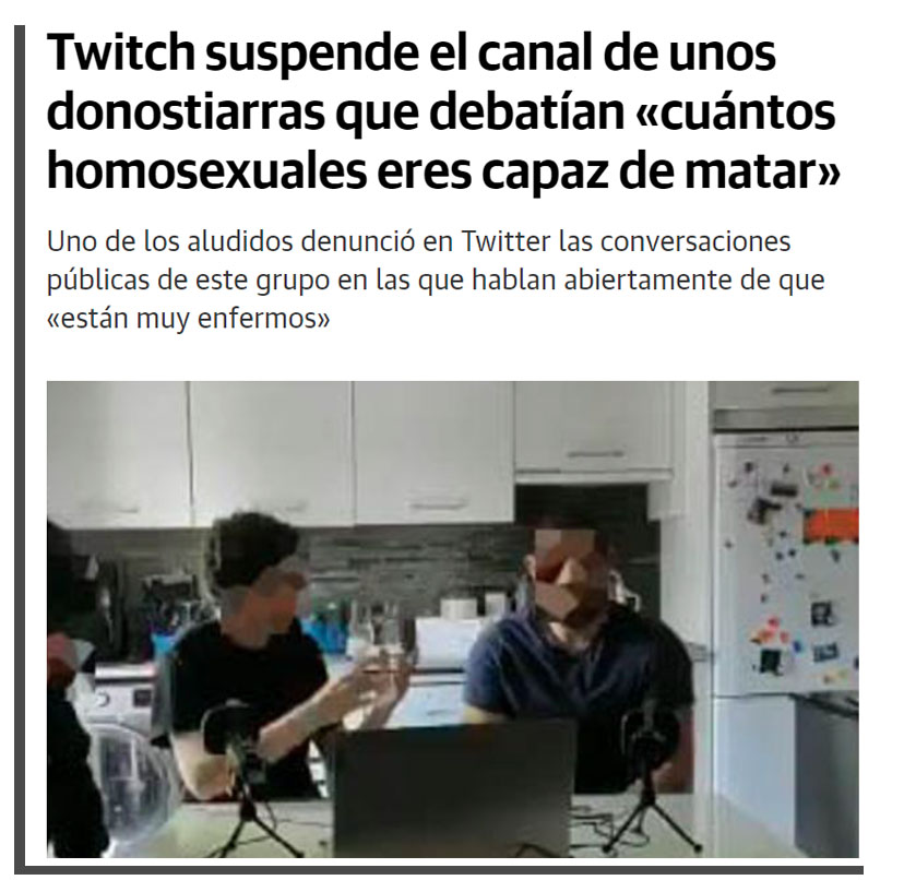 Twitch gizarte-sarean zenbait donostiar gaztek egin dituzten komentario homofofoak direla-eta, biolentzia handia adierazten duten hitzak erabiliz gainera,